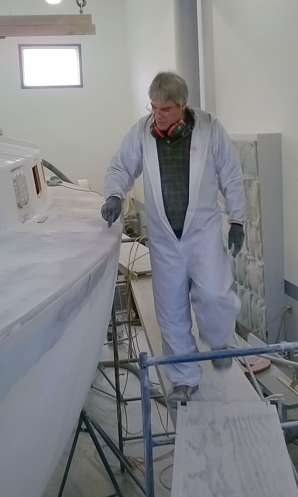 Bill is counting the toe rail holes – only 82 per side. No wonder it took awhile to drill all of them.