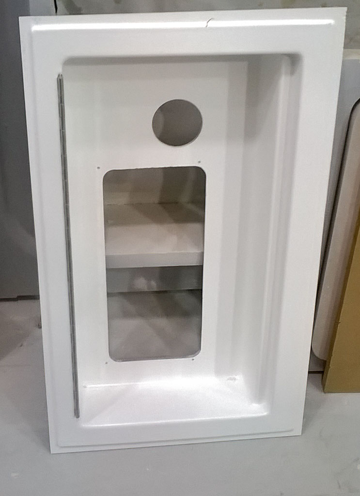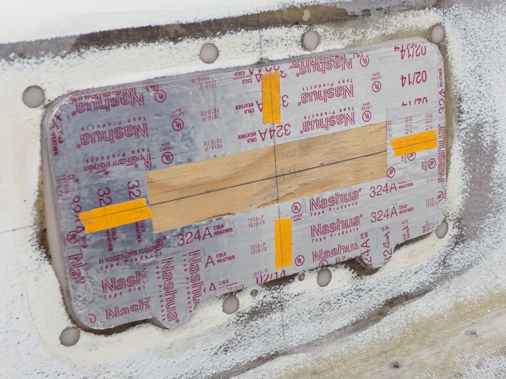 Finished port opening. The excessive gaps are now filled and the opening is now much easier to fill with caulk.  No more butyl rubber!