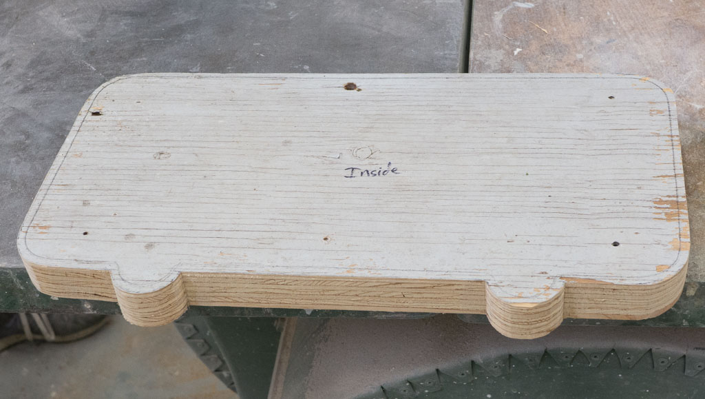 It has been a five day weekend at the boat shop. We made progress on several fronts. The propane locker got its holes and top joint glassed again and is now done. The engine beds logs are prepped for glassing and the mounting holes for the deck hardware on the fore deck and cabin top have been cast and drilled out.  Marsden made a new floor for the anchor locker. The new engine panel mount has been made. Now it needs to get installed in the cockpit.engine_panelNina has spent the last two days crawling in and out of the cockpit lockers with cardboard and tape and she now has a template for the cockpit support bulkhead. This will stiffen up the cockpit and prevent problems in the future. It also gives us something to mount the under deck auto pilot to.