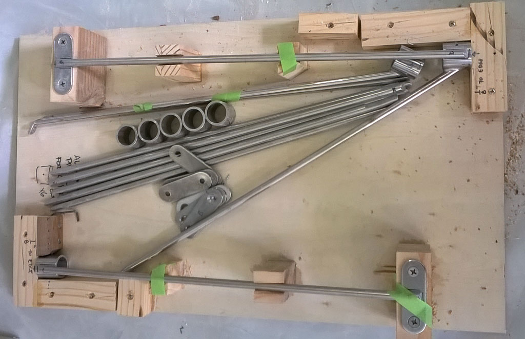 Chris put together a welding jig for the stanchions.  Marsden bent and polished all the pieces on the lathe and milling machine.