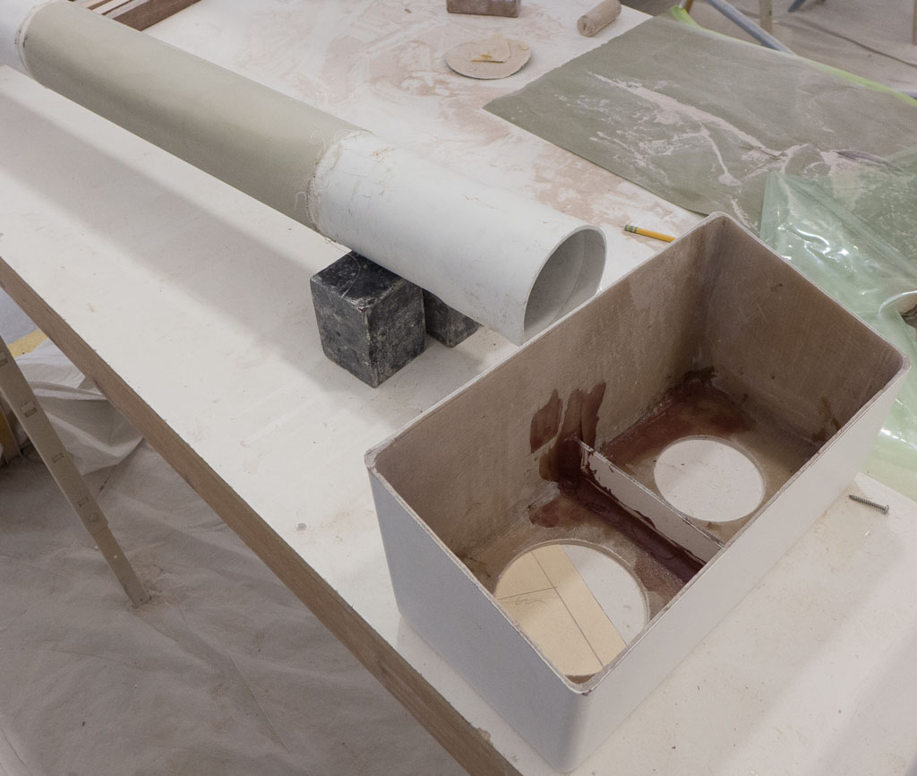 This was followed by drilling holes and casting them with epoxy. Next week we will re-drill them.
