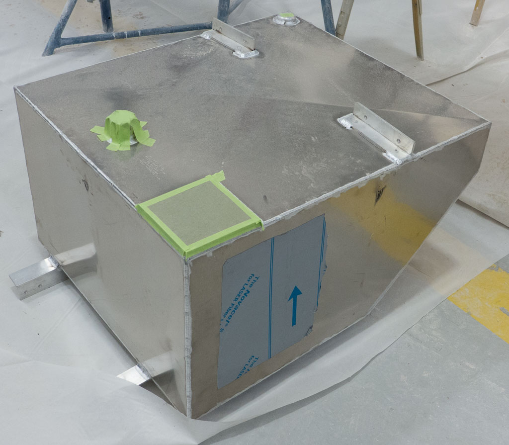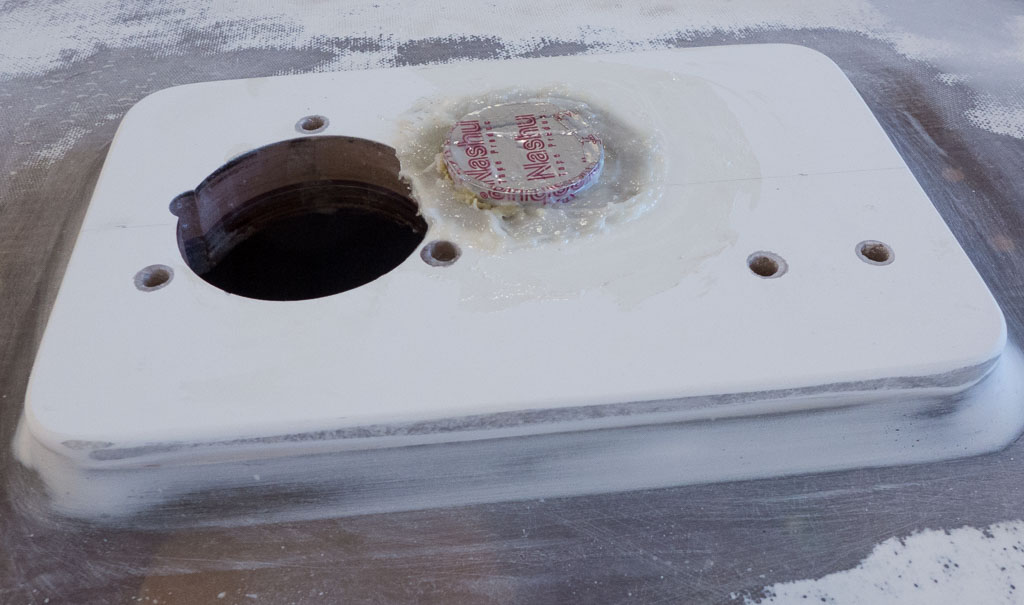 Tuesday the holes for the cowl vent and inspection plate were cut out on the dorades and a baffle was glued in to keep spray coming down the cowls from going into the air tubes.