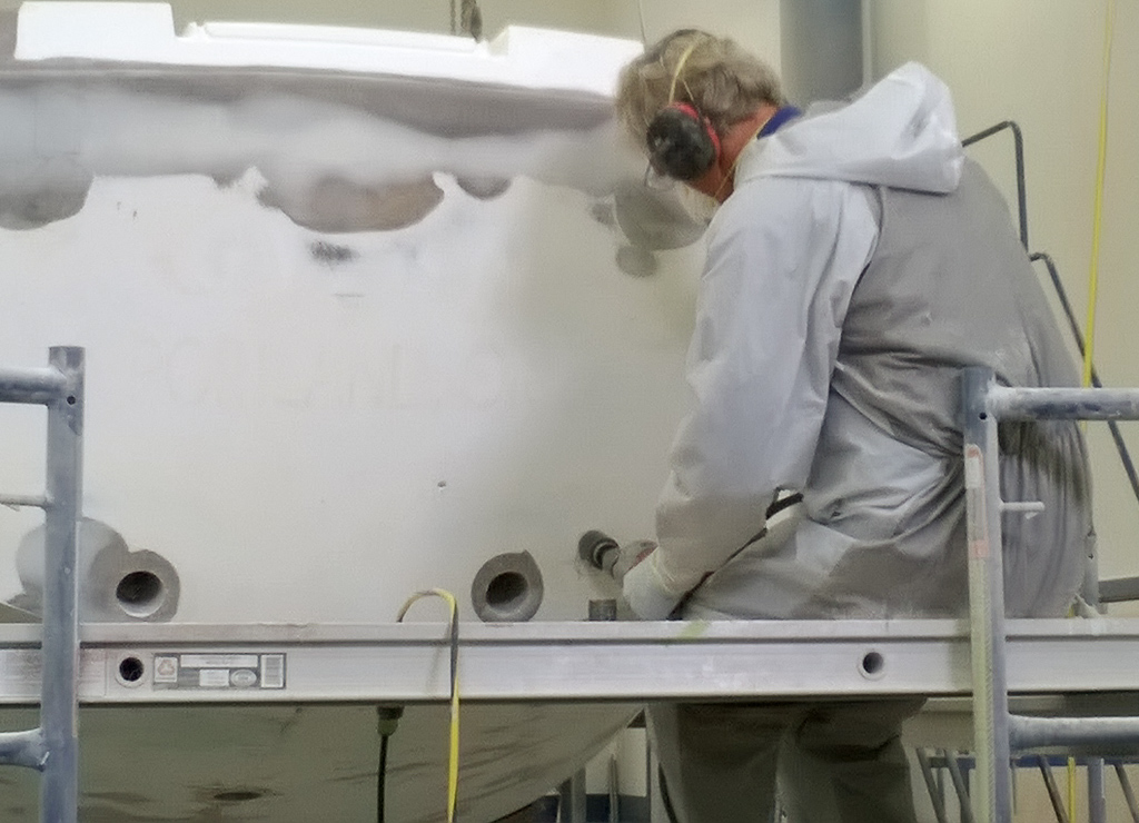 Tuesday we needed to cast the holes for the stanchion braces. To do this we removed the stanchions and the toe rails. They had been put back on to locate where the braces would go. Then we had to drill out the holes. They go in from the sides of the boat through the shear clamp. To cast them we drilled down from the deck into the holes and then taped off the horizontal holes. This time we had no gushers. Epoxy is sneaky. It waits until you think it’s kicked, and then it leaks. Only a couple of slow oozes, thankfully, but we did have one set of holes that absorbed an amazing amount of epoxy.