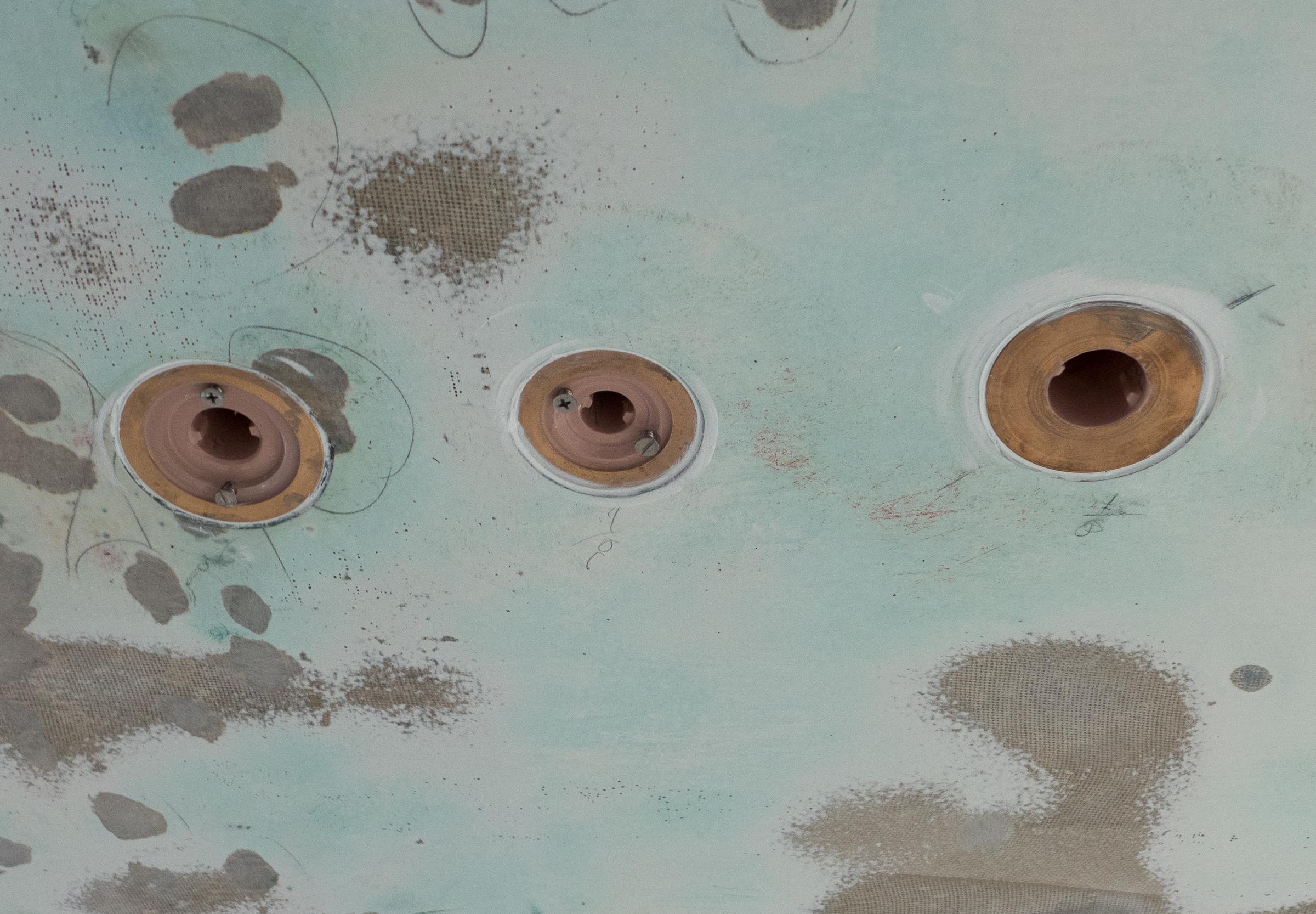 One of the drawbacks of spending all of our spare time working on the boat is when we get done we are tired and taking photos is not a high priority. We do want to make our blog posts scintillating, so we always get at least a couple of shots which we then Photoshop into the exciting images you see while you read about our latest week. One of the exciting things that happened this week was installing the thru-hulls. The thru-hulls are big valves that get put in holes in the hull to let water in or out. You can shut them so if something goes wrong you can stop the water.