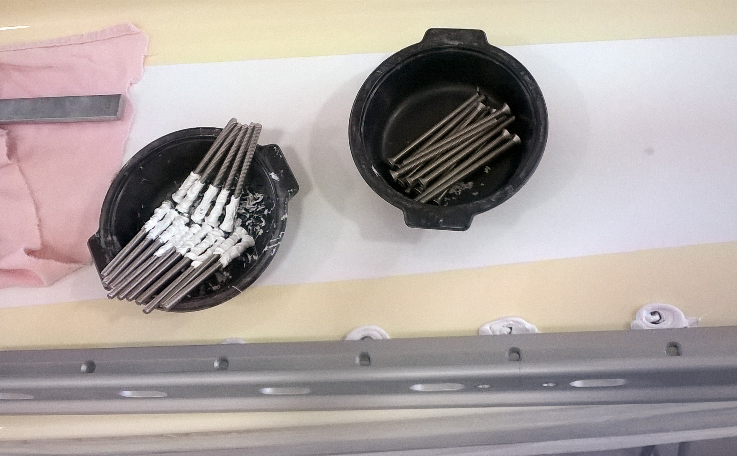 Today we put the port toerail on. 82 more bolts. It took just as long as the starboard rail.