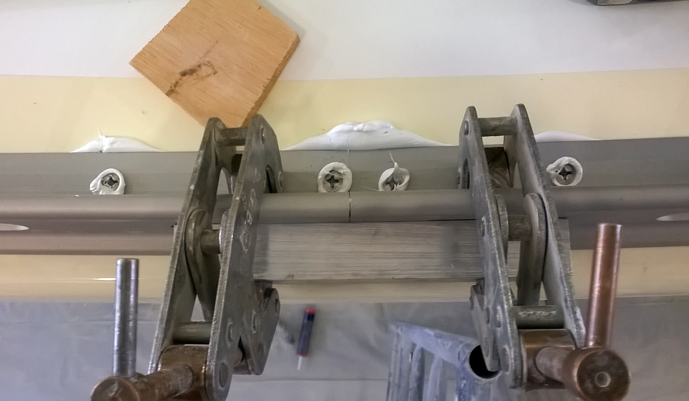 Tuesday we tackled hand rails. We had to cut new pipe for the long rails on the cabin top. The threaded backing plates worked very well for the handrails.
