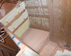 Meanwhile, work continued on the galley. Bill worked on templates while Nina added bondo fillets to the settee upright bulkheads.