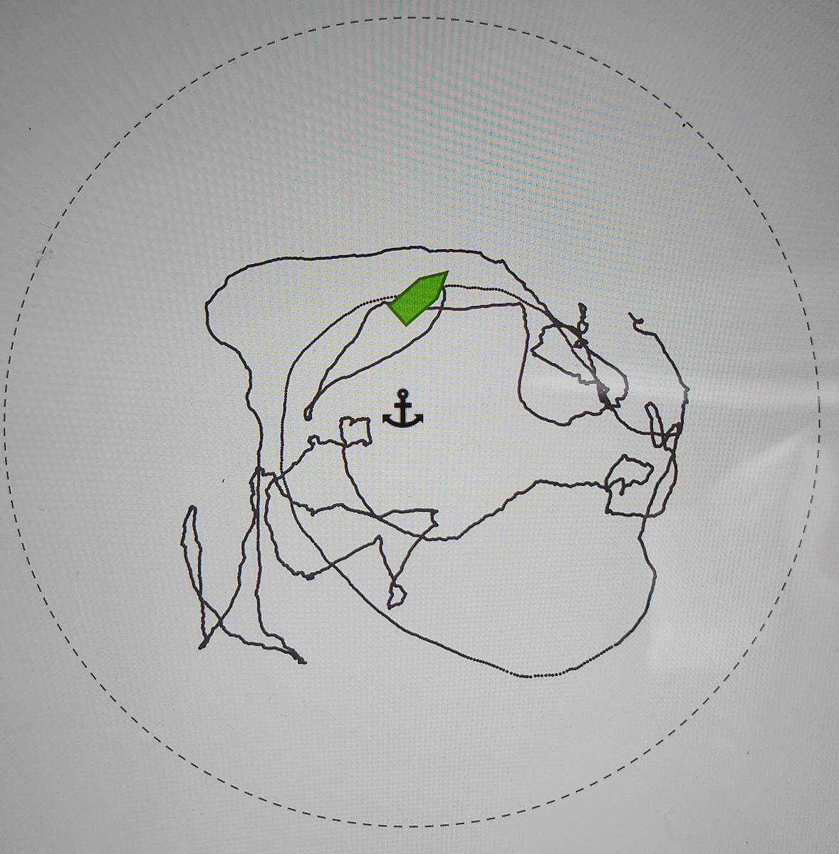 Russell Island was originally homesteaded by a Hawaiian family who had an orchard. It’s now a park and in years past, they’ve had volunteers who talk about the family and their history. This summer, the volunteers were renovating the buildings. There are a couple of short trails and we walked those. We anchored separately at Russell and Bill turned on his AnchorWatch ap. Boats do not stay in one place at anchor!