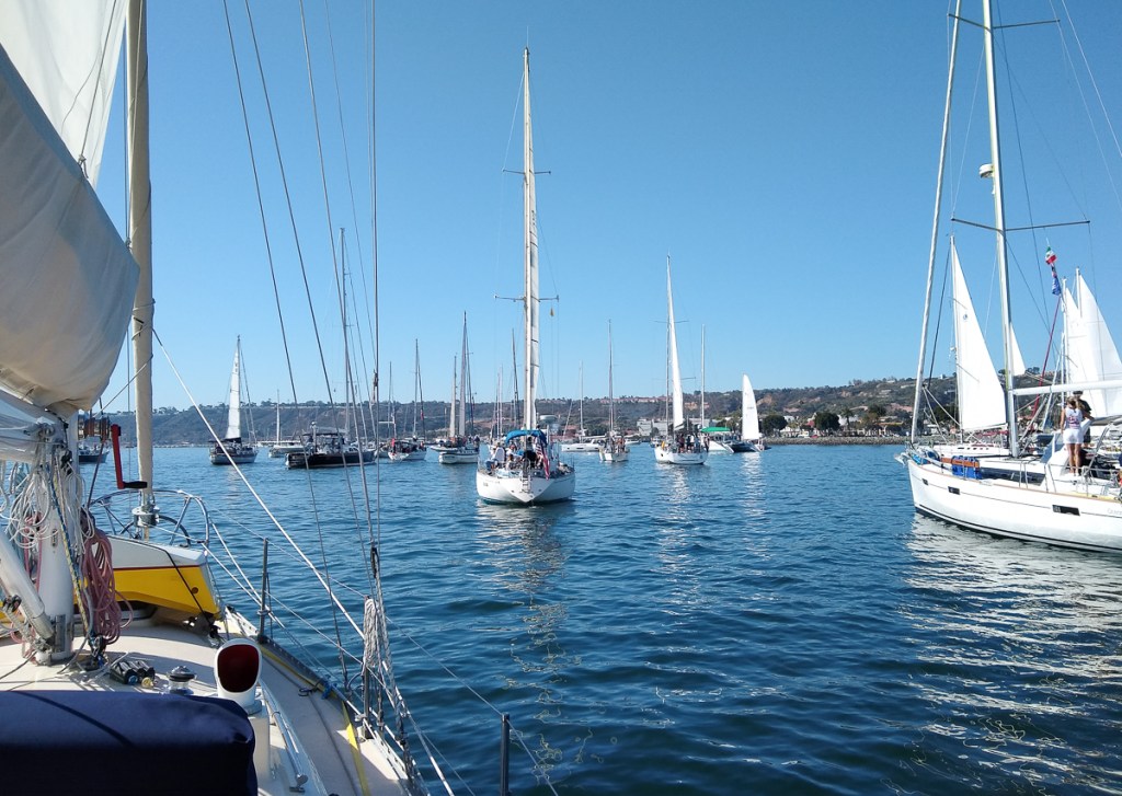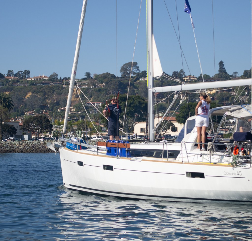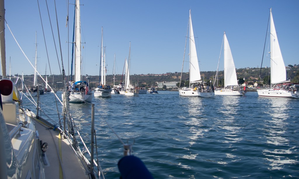 Finally, HaHa launch. Bill went to the captain’s meeting while Nina hit the laundromat for a final load. Kick off party in the afternoon. Boat parade the next morning. The boat next to us had a bagpiper who played What Shall We Do With The Drunken Sailor as we motored out. Not much wind once we got out into the ocean, so we motorsailed.