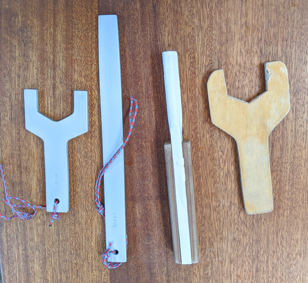 New aluminum dinghy tools and the old wood and plastic tools.