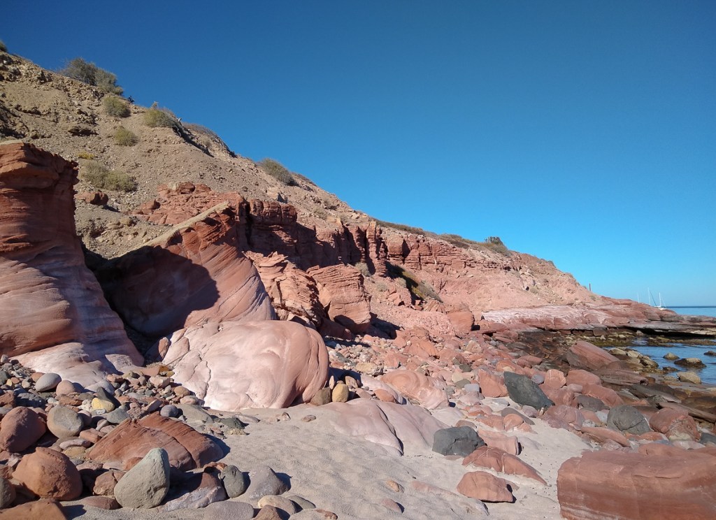 Isla San Francisco is another place that gets mentioned as a favorite place to go. There’s a nice anchorage on the south side. Last year when we did an overnight there, we were one of about twenty-five boats, mostly sailboats. This year, the number of boats in any anchorage is much smaller. There are very few Canadians, as they can’t drive down because the Canadian border is closed into the US. When we got here, there were six other boats here: one other sailboat, five big catamarans. By the next afternoon, we were the only sailboat left. The seven other boats were all big motor yachts, at least 50+ feet in length. Some boats have Americans, but the rest have Mexicans aboard. It felt like a small version of Roche Harbor.