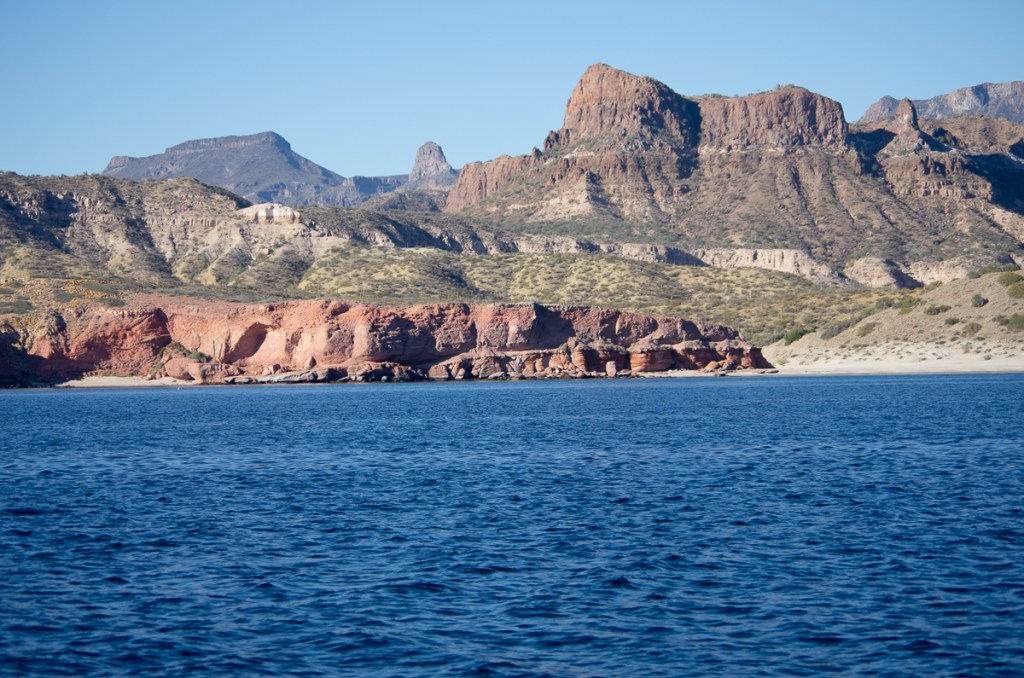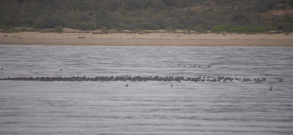 Punta San Telmo, is a small bay south of Agua Verde. There are a number of small bays you can tuck into when it’s calm. Winds out of the south were predicted, and San Telmo is a beautiful, safe place to anchor in when southerlies kick in. There is a nice sand beach and trails that can be hiked. The weather started socking in: totally gray skies, rain, fog, but not a lot of wind. It was like being in the Pacific Northwest!