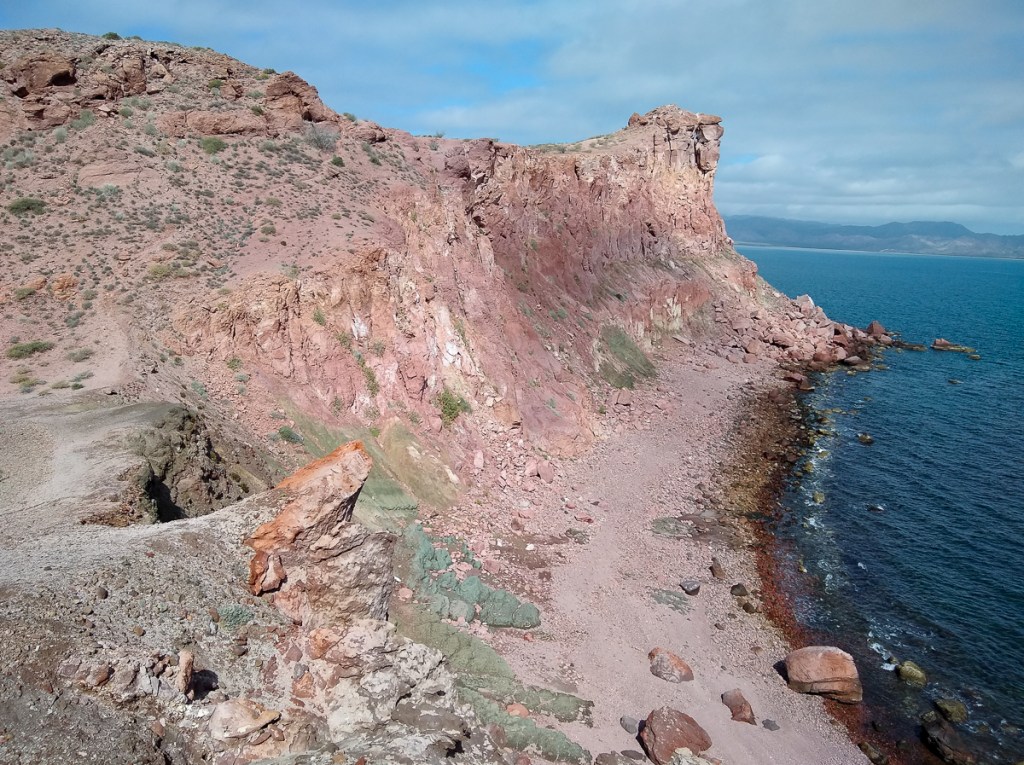 We enjoyed a couple of days Isla San Francisco and then headed down toward Ensenada el Cardonal on Isla Partida. On the way we caught a nice black skipjack. The bottom at Cardonal was really grassy so even our 45 pound Mantus anchor wouldn’t grab. We tried a couple of times, but the anchor chain came up looking like a badly decorated Easter Basket. We had long, fine strands of grass everywhere. Off to El Cardoncito instead. Cardoncito is a small, V shaped cove that can maybe hold two boats at anchor. We dinghied over to the beach at the end and discovered that there’s a doable hike up into the island, but not in flip flops. Drifted along the canyon side on the way back to Gypsy and saw lots of fish: Panamic Sergeant Majors, half a dozen Guineafowl Puffers, a Balloon Fish and a bunch of Reef Cornet Fish. The latter look like undulous translucent ribbons in the water while they are moving. At rest they become lightly striped. That night the wind changed and blew out of the south, directly at us. It was a lumpy, hobby horse ride. Not much sleep. The wind was forecast for NE so we headed around the top of Isla Partida and headed over to Playa el Bonanza, on the south side of Isla Espiritu Santo. Pichelingue was the next quick stopover and then on to the Magote, the anchorage in La Paz. It was time to fix the water maker and have the engine looked at. However, the tidal flow at the end of January was a couple of meters, coupled with some high winds funneling down the channel. After a long, rough, wet dinghy ride to Gypsy, we headed back to Pichelingue for a couple of days until the wind died down. We scheduled a slip at Marina Palmira and went in to get work done.