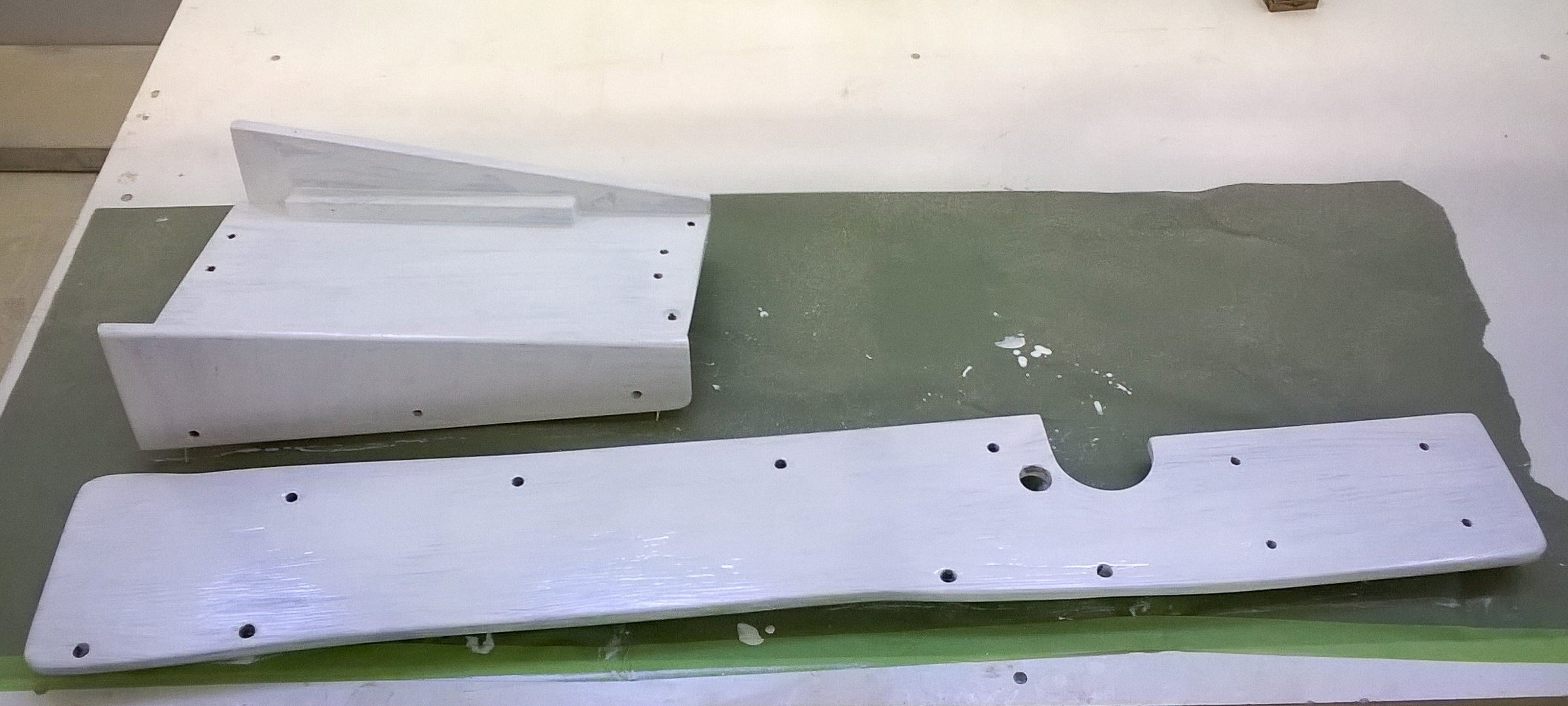On the right is the upside down platform for the autopilot. The left piece is the front that goes underneath the platform. Not shown is the little bulkhead that goes down the center of the platform to support it.