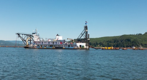 This is one of the big dredges that work on the Columbia River. It was working just below Harrington Point, where the river widens out before it gets to Astoria.