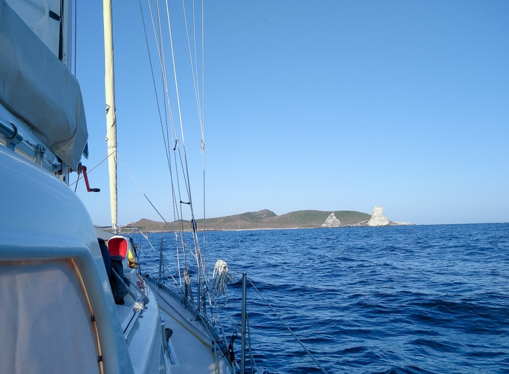 We left in the evening for San Carlos. It’s a 70 mile trip that will take us about 14 hours so it makes sense to arrive in daylight rather than at dark. It will be cooler than doing it in the daytime. Pangas will be harder to see, as they often fish without running lights, but there weren’t any to see. We managed to avoid a freighter by Isla Tortuga. The crossing was smooth until about 0100, just past Tortuga, when the chop kicked in with 3 foot or so waves at about 3 second intervals. It got bumpy. We dropped anchor the next morning in Bahía Algodones near San Carlos and discovered we were in a different time zone, an hour ahead, and really in need of a nap.