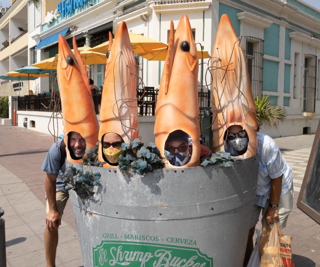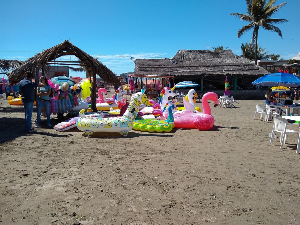 Playa El Burro was our next destination. On the way back to the dinghy, we bought a kilo of nice shrimp from a guy in the parking lot by the beach. We ran it to the fridge and headed back in for lunch at the sports bar on the beach. Berta’s had a foosball table, a pool table and one or two tables to sit at to eat, and five things on the menu. We had fish tacos. They were good.
