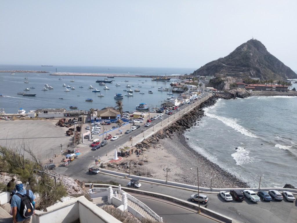 The central part of town is a short walk from the marina. One day we walked by what we figured out was a miners’ meeting at the town plaza. They were hoping for a 6 percent increase in wages. We found out later that they didn’t get it. The mine, originally Belgian owned, is now owned by a Korean/Canadian concern. They are trying to get AMLO, the Mexican president, to give them more land so they can stay open. That is probably a gross over-simplification, but the end of decent jobs will have an impact on the town. The library was open and is named after Mahatma Gandhi. It has computers and a small collection of books. We talked to some of the library staff and met the director. We wandered some more and found a nice ice cream shop, a couple of good tortillerias. On our second try, we walked up to the cemetery on top of the hill south of town.